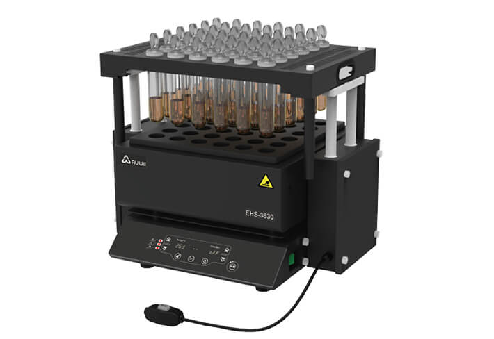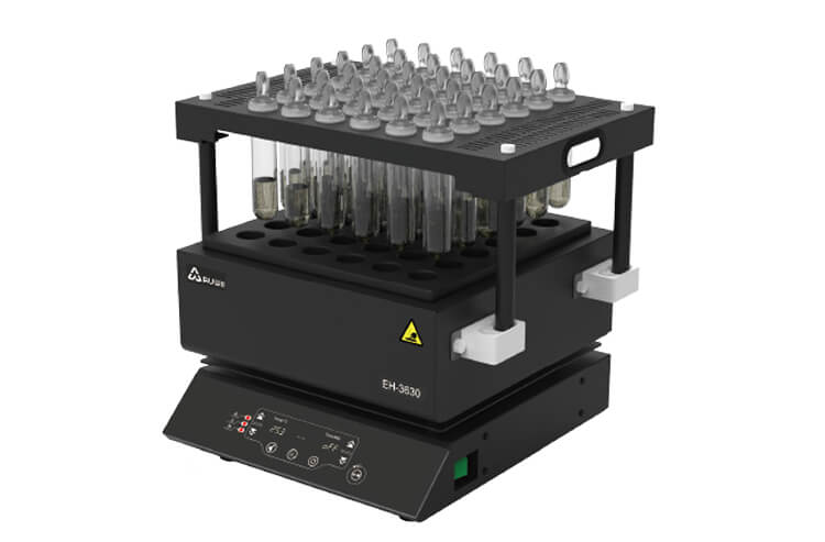 EH 系列防腐型石墨消解仪是一款适合在高浓度酸雾环境中进行样品消解的样品前处理设备,可以支持多达60个样品的同时处理,充分满足批量样品处理需求。阶梯程序控温,自动完成消解、赶酸工作步骤,最大程度减少实验人员与酸气接触。